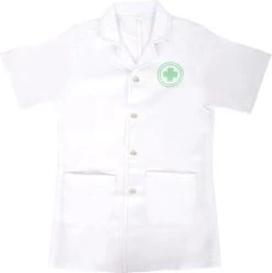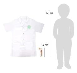 Outfit für kleine Mediziner und Nachwuchspfleger! Mit dem passenden medizinischen Equipment ist die Kostümierung besonders authentisch und verspricht realistischen Spielspaß. Spritze, Stethoskop und Fieberthermometer bestehen aus robustem Holz! Besonders praktisch sind die beiden großen Taschen und die Druckknöpfe am Kittel. Für Jungs und Mädchen gleichermaßen geeignet!