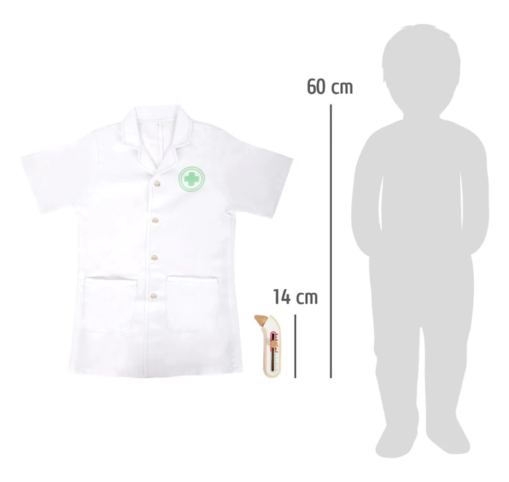 | Maße cm | Arztkittel Kleidergröße 110, Fieberthermometer ca. 14 x 6 x 3,5 cm |