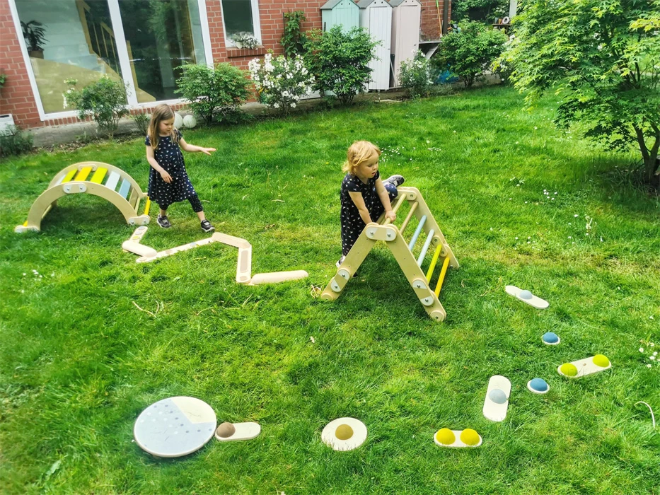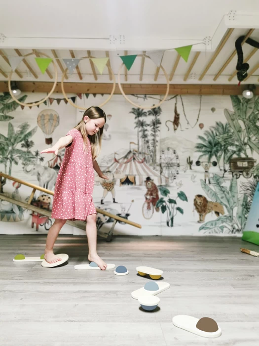 Durch die schlichte Gestaltung und die simple Formgebung in Kombination mit modernen Farben und viel naturfarbenem Holz passen sich die Steine jedem Wohn- und Kinderzimmer optimal an! Besonders praktisch: Durch die Möglichkeit des individuellen Parcoursbaus kann der Schwierigkeitsgrad an Können und Alter der Kinder angepasst werden – die Balanciersteine „wachsen somit wie von selbst mit“. Dabei regen einzeln platzierte Balanciersteine oder ein kompletter Balancierparcours zu immer neuen Spiel- und Bewegungsideen an. Auch für Therapiezwecke geeignet!