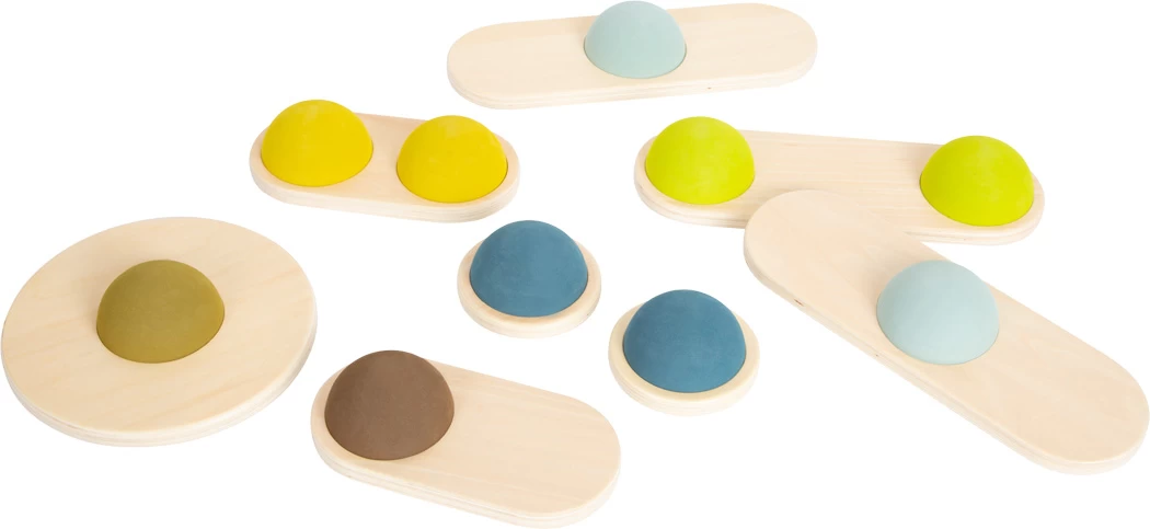 Diese beidseitig nutzbaren Balanciersteine aus stabilem Holz sprechen nicht nur den Gleichgewichtssinn und Bewegungsdrang kleiner Abenteurer an, sie trainieren auch mit viel Spaß Balance und Koordination! Die unter jedem Balancierstein unterschiedlich angeordneten Halbkugelelemente aus robustem Schaumstoff stellen Kinder dabei vor verschiedene Herausforderungen. Miteinander kombiniert, entsteht aus allen Steinen zusammen ein kreativer Balancierpfad mit individuell anpassbarem Schwierigkeitsgrad.