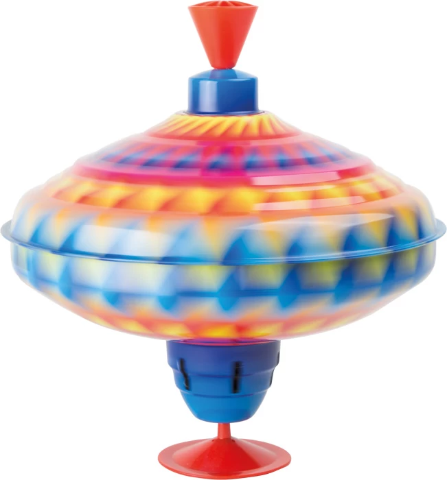 Wer kennt ihn nicht, den Brummkreisel? Ein tolles buntes Blechspielzeug, das sich durch Druck auf den Stiel zu drehen beginnt und ein Brummen ertönen lässt. Durch den Standfuß aus Gummi bleibt er an seinem Platz. Ein tolles Spielzeug für Kinder!