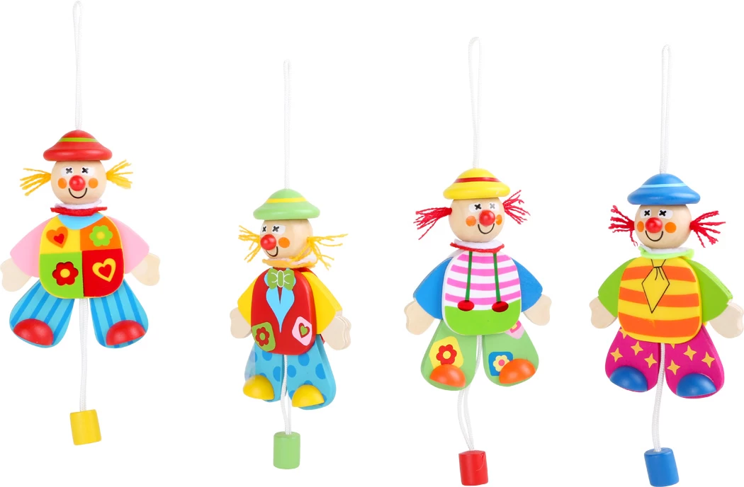 Wer macht sich denn hier zum Hampelmann? Der Hampelmann selbst und zwar mit seinen Freunden. Alle sitzen im Display und warten darauf, dass an ihrer Strippe gezogen wird. Eine kleine Schnur am Kopf dient als Aufhänger. Ein lustiges Holzspielzeug für Kinder. Bitte beachten Sie, dass dieser Artikel vorher die Artikelnummer 3936 hatte.