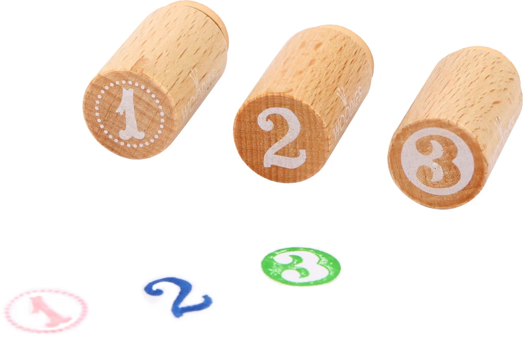 135 Stück. Neun verschiedene Ziffermotive zieren diese tollen, runden Holzstempel. Sie verzieren Postkarten, Geschenke oder selbstgemalte Bilder. Mit den Woodies Stempelkissen Artnr.: 10313 können Stempel in verschiedenen Farben abgebildet werden.