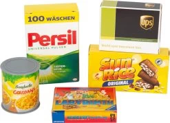 Schön praktisch: In diesen Einkaufskorb passt eine Menge hinein. Ob Miniatur von Markenprodukten oder „frische“ Lebensmittel aus Kunststoff – so macht Einkaufen richtig Spaß! Das bunte Produktsortiment ist eine vielseitige Ergänzung für den Kaufmannsladen und regt zum fantasievollen Spiel an. Inhalt variabel.