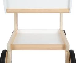 Die Gummiräder hinterlassen keine Spuren auf empfindlichen Böden und machen kaum Lärm – so wird der besonders stabil stehende Einkaufswagen bei allen Familienmitgliedern zum beliebten Begleiter für das Rollenspiel im Kaufladen. Extra leicht zu schieben, mit handschmeichlerischem Holzgriff! Tipp: Auch zum schnellen Aufräumen im Kinderzimmer ist der moderne, genderneutrale Shopping-Begleiter ideal!
