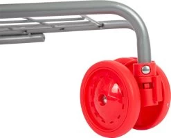 Mit roten Akzenten an Rollen, Griff, Gestell und Fahne! Besonders praktisch: Die Vorderräder sind bis zu 360 Grad drehbar und sorgen dafür, dass der Kindereinkaufswagen für Kinder leicht zu lenken ist. Mit dem Einkaufswagen können schon die Jüngsten ihre Eltern nachahmen und im aktiven Rollenspiel Einkaufen wie die Großen. Die perfekte Ergänzung zum Kaufmannsladen.