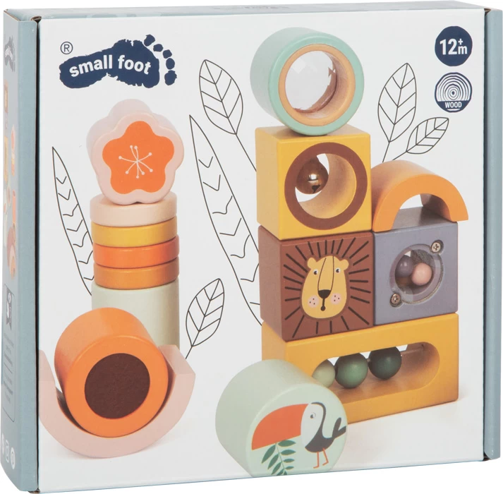 Die Entdeckerbausteine „Safari“ sind klassische Sinnesbausteine im angesagten Safari-Look zur Anregung aller Sinne und zur Schulung von Motorik und Hand-Auge-Koordination. Die Bausteine lassen sich gut greifen und prima stapeln – so ist der Fantasie keine Grenze gesetzt und schon die Jüngsten können immer neue Bauwerke und Türme kreieren.