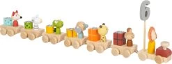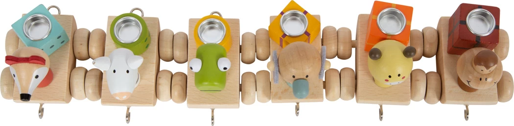 Nächster Halt: Geburtstagstisch! Der Kerzenzug ist die ideale Dekoration für den Kindergeburtstag! Jeder der 6 kleinen Holzwaggons beherbergt ein anderes Tier und ein Geschenk mit Kerzenfassung. Die Waggons lassen sich über kleine Haken und Ösen kinderleicht verbinden.