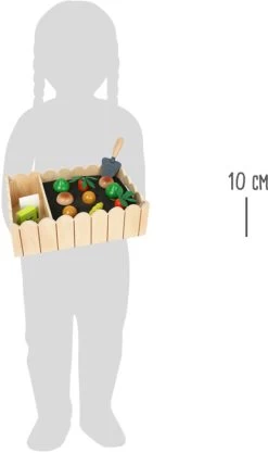 Mit der beigefügten Schaufel können die Kinder das Gemüse ernten und dann mit den Samen und dem Dünger neue Pflanzen aussäen. Ein Beet, das auch im Haus viel Freude bereitet und bei der Ernte die feinmotorischen Fähigkeiten der Kinder fördert. Ein großer Spaß für alle Kinder, die mit diesem Mini-Beet aus Holz zu kleinen Gärtnern werden!