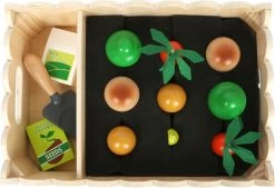 | Inhalt | 1 Mini-Beet aus Holz, 1 Packung Samen, 1 Packung Dünger, 1 Wurm, 1 Schaufel, 2 Kartoffeln, 2 Pilze, 2 Karotten, 2 Brokkoli. |