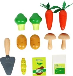 Alle kleinen Gärtner aufgepasst! Dieses Gemüsebeet mit Holzumrandung bietet alles, was das kleine Gärtner-Herz begehrt. Neben Karotten, Pilzen, Kartoffeln und Brokkoli beinhaltet das Set noch eine Schaufel, Dünger und Samen. Außerdem hat sich auch eine kleine grüne Raupe eingeschlichen. Im aktiven Rollenspiel lernen die kleinen Gärtner, wie Gemüse angebaut wird.