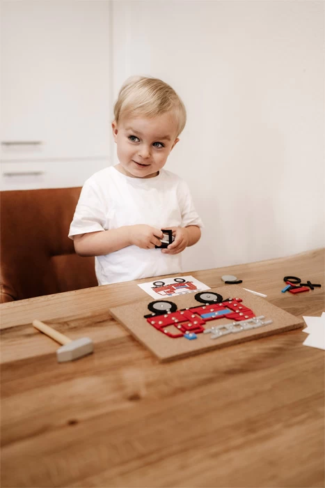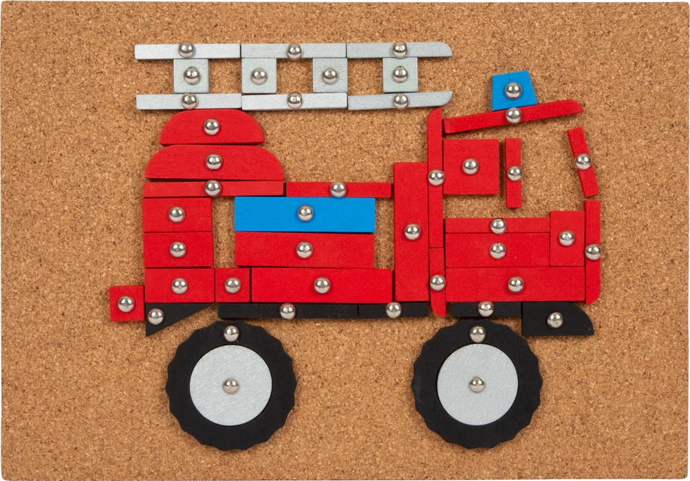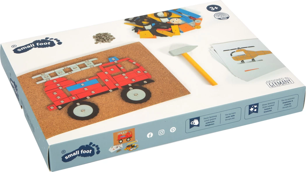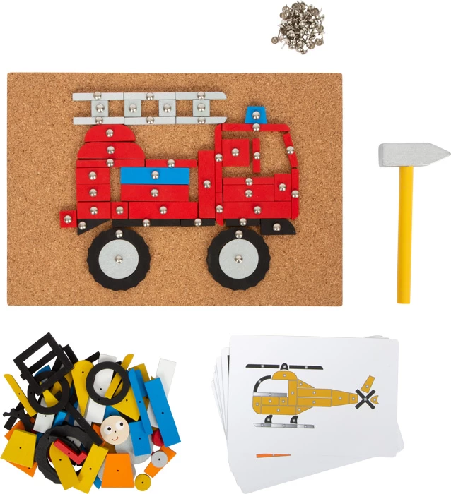 Umfangreiches Kreativ-Set rund ums Thema Mobilität, Fahrzeuge und Szenen aus dem urbanen Umfeld! Ausgestattet mit Korkbrett, Holzhammer, Ziernägeln und vielen Holzelementen aus Schichtholz, lassen sich mit diesem Hämmerchenspiel zahlreiche Motive erschaffen. Mit 6 Bildvorlagen und Aufbewahrungsbox!