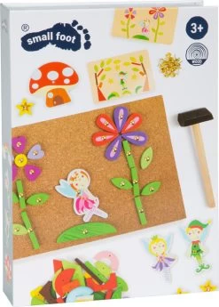 Mit diesem HÀmmerchenspiel lassen sich verschiedene Feenmotive auf ein Korkbrett hÀmmern. Vier Karten machen MotivvorschlÀge, wie ein Bild aussehen kann. Verpackt in einer Schachtel ist es gut aufzubewahren.