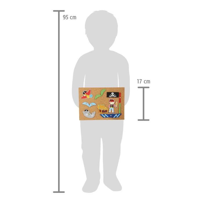 Mit diesem Hämmerchenspiel lassen sich verschiedene Piratenmotive auf ein Korkbrett hämmern. Vier Karten machen Motivvorschläge, wie ein Bild aussehen kann. Verpackt in einer Schachtel ist es gut aufzubewahren.