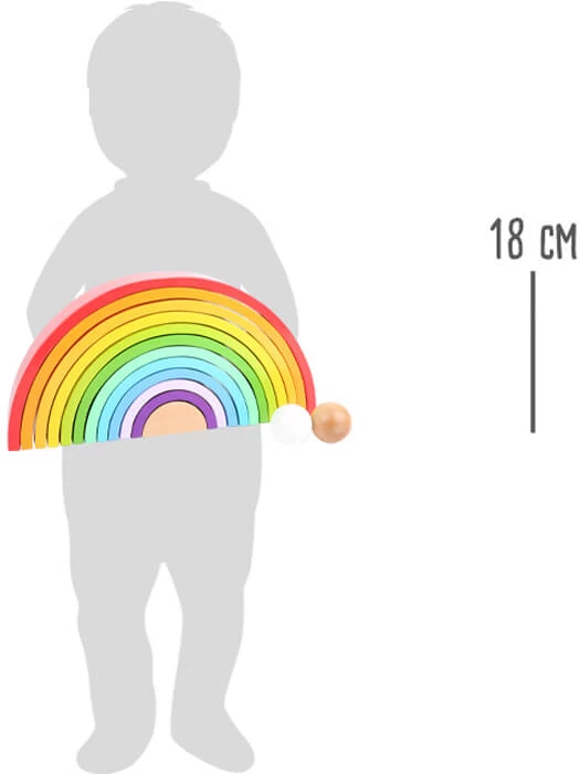 Farbenfroher Spielspaß garantiert! Der Regenbogen inklusive 2 Holzkugeln besteht aus stabilem Holz und ist in kräftigen Farben lackiert. Zusammengestapelt ist er ein toller Hingucker im Regal, aber der richtige Spielspaß entsteht durch die zahlreichen Spielmöglichkeiten.