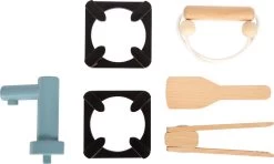 | Inhalt | 1 Campingkocher, 2 Aufsätze, 2 Ausschnittkarten für Lebensmittel, 1 Küchenhandtuch, 1 Grillzange, 1 Pfannenwender, 1 Backblech/Grillrost, 1 Pfanne, 1 Topf mit Deckel |