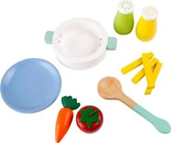 | Inhalt | 1 Zuckerstreuer, 1 Pfefferstreuer, 1 Topf, 1 Rührlöffel, 1 Möhre, 1 Tomate, 4 Pommes, 1 Teller. |