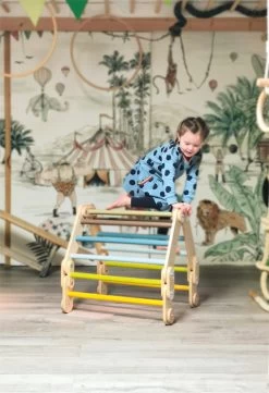 Einzeln nutzbar oder kreativ einsetzbar als Teil eines ganzen Parcours aus Bewegungsspielzeugen der Linie „Adventure“. Beim Klettern und Spielen in der sicheren Umgebung zu Hause schulen schon kleine Kinder Gleichgewicht, Geschick, Kraft und Koordination. Durch die schlichte Gestaltung, die simple Formgebung und viel naturfarbenes Holz integriert sich das Dreieck spielend leicht in jede Wohn- und Kinderzimmerumgebung! Auch für Therapiezwecke geeignet!