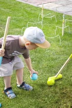 Ein Klassiker für den Garten. Beim Krocket-Spiel sind Geschick und Konzentration gefragt. Das Outdoor-Spiel aus FSC® 100%-zertifiziertem Holz ist ein großer Spaß für die ganze Familie. Die Parcours-Tore können mit mehr oder weniger Abstand und in unterschiedlichen Formationen ins Gras gesteckt werden, sodass unterschiedliche Schwierigkeitsstufen entstehen.