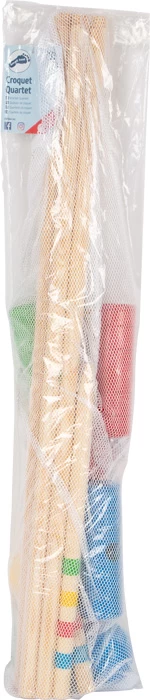 Outdoor-Klassiker für die ganze Familie, bei dem Geschicklichkeit und Konzentration gefragt sind! Das Krocket-Spiel aus Holz ist für bis zu vier Spieler geeignet und garantiert spannende Partien im Garten, im Park oder am Strand. Je nach Gestaltung des Parcours und Platzierung der mobilen Tore, kann die Schwierigkeit des Spiels variiert werden. Wer befördert seine Kugel als erstes durch die bunt gestreiften Zielpflöcke? Mit praktischer Tragetasche!