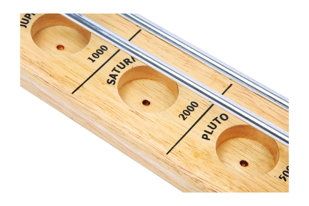 Auf dem Spielbrett aus klar lackiertem Massivholz befinden sich sechs Löcher (Planeten), in welche die Metallkugel manövriert werden soll – aber wie? Wenn die Stangen etwas auseinander gehen, rollt die Kugel los. Aber wer schafft es, sie bis zum Pluto zu bringen und damit 5000 Punkte zu erzielen?