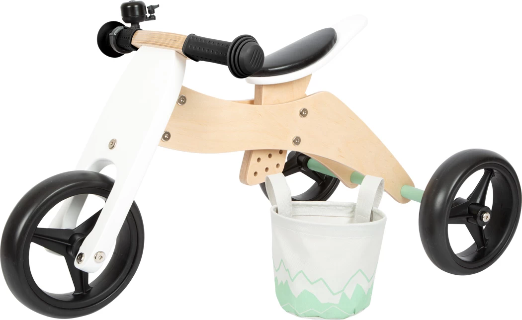 Für Mini-Biker ein Muss! Dieses kompakte Laufrad-Trike begeistert durch zahlreiche Ausstattungsmerkmale und eine coole Optik in modernem Design. Fahranfänger starten mit der sicheren, dreirädrigen Variante. 3-fach verstellbare Sattelhöhe und 3-fach verstellbarer Sitzabstand erlauben die perfekte Anpassung ans Kind. Mit fortschreitendem Fahrvermögen und Gleichgewicht wird aus dem Trike durch schnellen Umbau ein klassisches Laufrad. Ultimatives Sicherheits-Plus: der Lenker mit Einschlagsbegrenzung! Klingel, abnehmbare Lenkertasche, Gummigriffe, unkaputtbare EVA-Softbereifung und ein gepolsterter Sitz sorgen für Fahrspaß!
