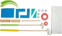 | Inhalt | 2 Schläger, 3 Bälle, 1 Loch, 10 Hindernisse, 1 Abschlagpunkt |