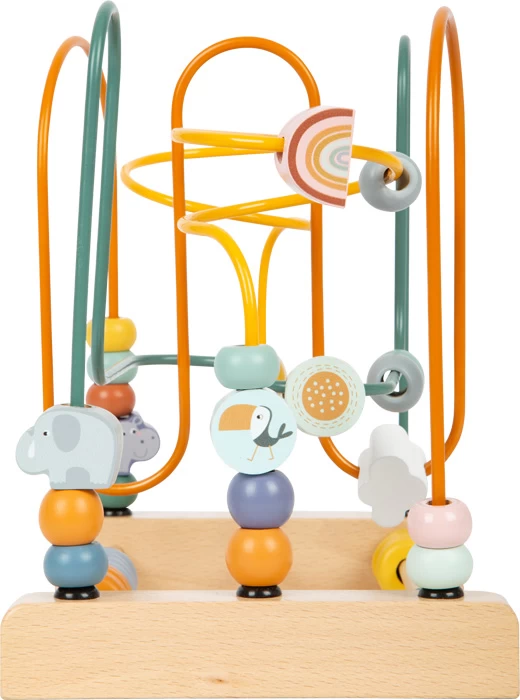 Wenn wilde Tiere den Jüngsten „zur Hand gehen“, ist Motorikförderung ein Kinderspiel! Werden die Holzperlen und niedlichen Safari-Tiere dieser klassischen Motorikschleife in moderner Safari-Aufmachung geschickt über die drei ineinander verschlungenen Metallschleifen geführt, verspricht das neben der Schulung von Feinmotorik und Hand-Augen-Koordination auch lang anhaltende Beschäftigung. PLUS: Auf zwei Holzstangen aufgereihte Ringe zum Schieben und Zählen ergänzen den Lernspaß perfekt!