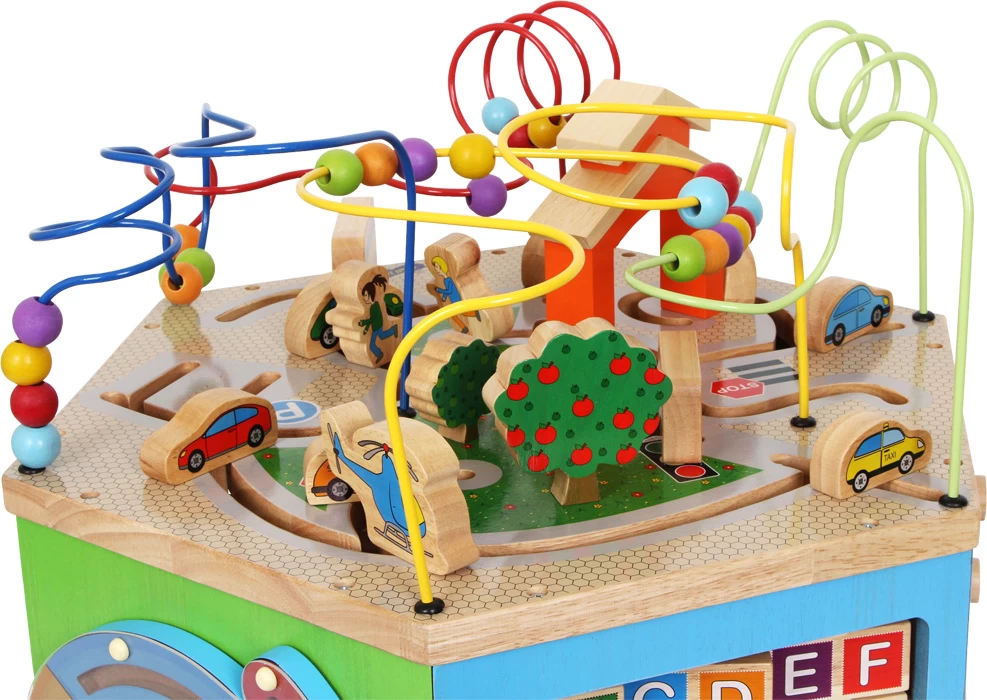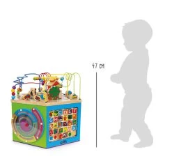 Auf geht’s zur Entdeckungsreise! Dieser bunte Motorikwürfel aus Holz bietet auf sieben Seiten verschiedenste Spielmöglichkeiten. Neben Motorikschleife, Puzzle, Labyrinth und Schiebespiel können die Kleinen gleichzeitig das Alphabet lernen und ihr Zahlenverständnis vertiefen. Dieser detailreiche Spielwürfel bietet Kleinkindern Abwechslung und garantiert stundenlanges Spielvergnügen. Da hat Langeweile keine Chance.