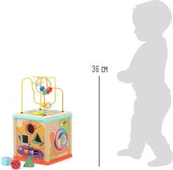 Highlights sind die zwei Motorikschleifen auf dem abnehmbaren Deckel. Aber die Kleinsten können an vielen weiteren Stationen ihre Motorik schulen und nach Herzenslust schieben, stecken und drehen: Wird der Frosch die Fliege fangen? Der farbenfrohe Motorikwürfel ist ein beliebtes Spielzeug, das vielseitigen, dauerhaften Spielspaß verspricht!