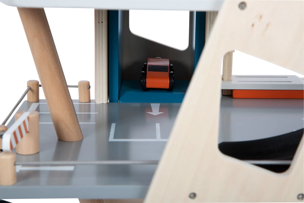 Ein absolutes Muss für kleine Auto-, Parkhaus- und Parkgaragen-Liebhaber und eine Bereicherung für den Fuhrpark im Kinderzimmer! Die beiden stabilen Kunststofframpen sind so positioniert, dass von oben bis unten eine durchgängige Abfahrt möglich ist. Dabei kann der Verkehr mithilfe der klappbaren Schranken gesteuert werden. Da sind ein hoher Spielwert und langanhaltendes Spielvergnügen garantiert. Da gestalterisch auf den Einsatz von Zahlen und Schriften verzichtet wurde, lassen sich die Icons und Grafiken schon von den Kleinsten verstehen. Die einzigartige Architektur sorgt für eine offene Bespielbarkeit bei größter Stabilität.