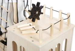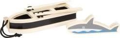 Ahoi ihr Seeräuber! Dieses detailreich gestaltete Piratenschiff aus robustem Holz lässt mit seinen vielen authentischen Details keine Wünsche offen! Das umfangreiche Spielset umfasst neben dem geräumigen Zweimaster auch ein Beiboot zum Rudern für zwei Biegepuppen, einen Hai, einen Papagei, eine Schatzkiste, eine Kanone sowie zwei Fässer, eine Planke und natürlich eine Piratenflagge. Wie bei einem echten Segelschiff lassen sich alle Segel an Seilen hissen und bergen. Für die Extraportion Spielspaß sorgt die Kanone, die ihre drei Kanonenkugeln aus Filz durch die Luft fliegen lässt!