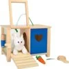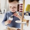 Pizzabacken wie die Großen! Hier können kleine Pizzabäcker individuelle Pizzen kreieren und die unterschiedlichen Beläge mit Klettverschlüssen auf dem Pizzaboden verteilen. Mit Hilfe des Holzschiebers geht’s dann ab in den Ofen, der durch eine bewegliche Klappe geöffnet und geschlossen wird. Die Beläge werden in übersichtlichen Fächern auf dem Ofen gelagert.