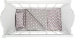 In diesem schlicht gehaltenen Gitterbettchen schlafen Puppen und Kuscheltiere besonders gut, weil sie nicht herausfallen können. Eine weich gefütterte Matratze sowie Bettdecke und Kissen sorgen für Puppenkomfort und die Wende-Bettwäsche mit Sternchen-Aufdruck rundet das Design perfekt ab. Für Puppen bis ca. 47 cm Länge geeignet.