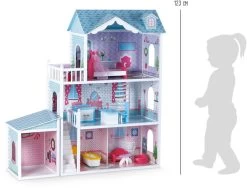 Ein schönes Spielhaus, das unendliche Entfaltungsmöglichkeiten bietet. Für bis zu 28 cm große Puppen geeignet.