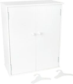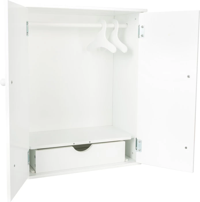 Dieser Puppenkleiderschrank ist eine praktische Erweiterung für die Puppenmöbel-Ausstattung. Zwei Kleiderbügel sind im Lieferumfang enthalten.