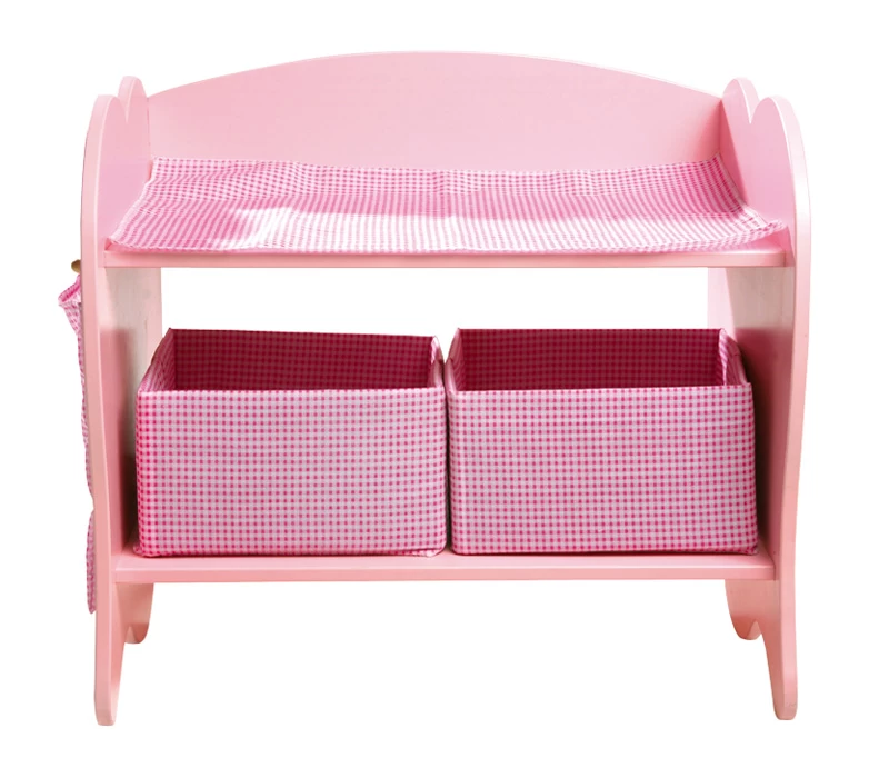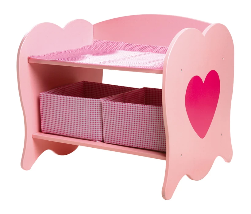 Auf diesem rosa Tischchen werden die Puppen von ihren Muttis bestens versorgt. Inkl. zwei Stoffkisten, ein Stoffbeutel sowie eine Decke. Die perfekte Ergänzung zu unseren Puppen, Puppenbetten und anderen Spielmöbeln!