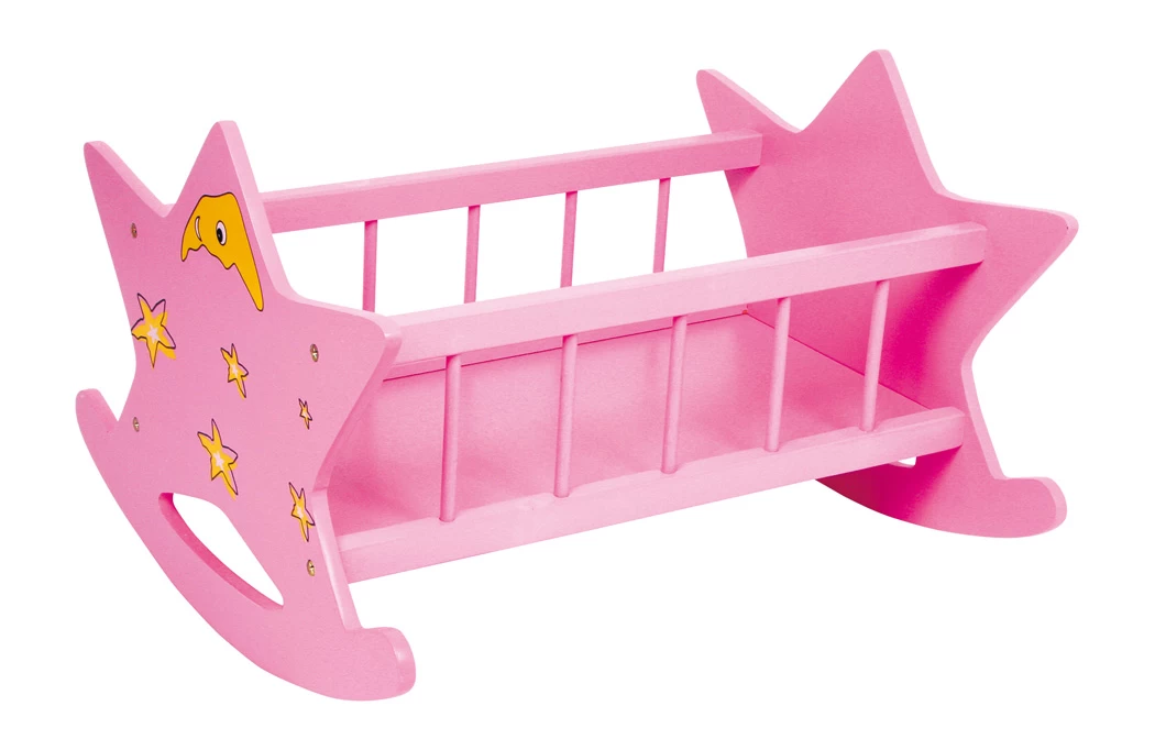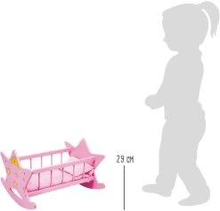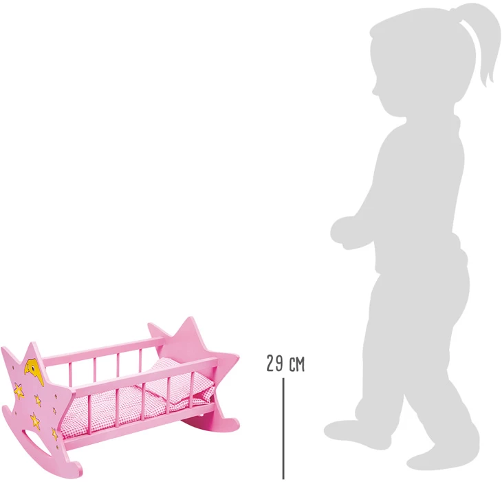 Sternengucker aufgepasst! Mit dieser tollen Puppenwiege aus robustem Holz lassen sich die Puppenkinder ins Land der Träume schaukeln. Durch das seitliche Gitter haben die Puppenmütter ihre Puppenkinder immer im Blick. Mit dem Sternendesign an Rücken- und Kopfteil kann die Wiege hin und her bewegt werden.