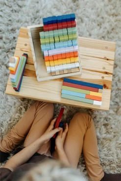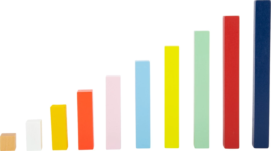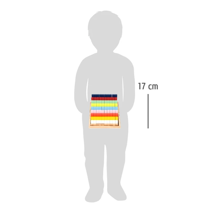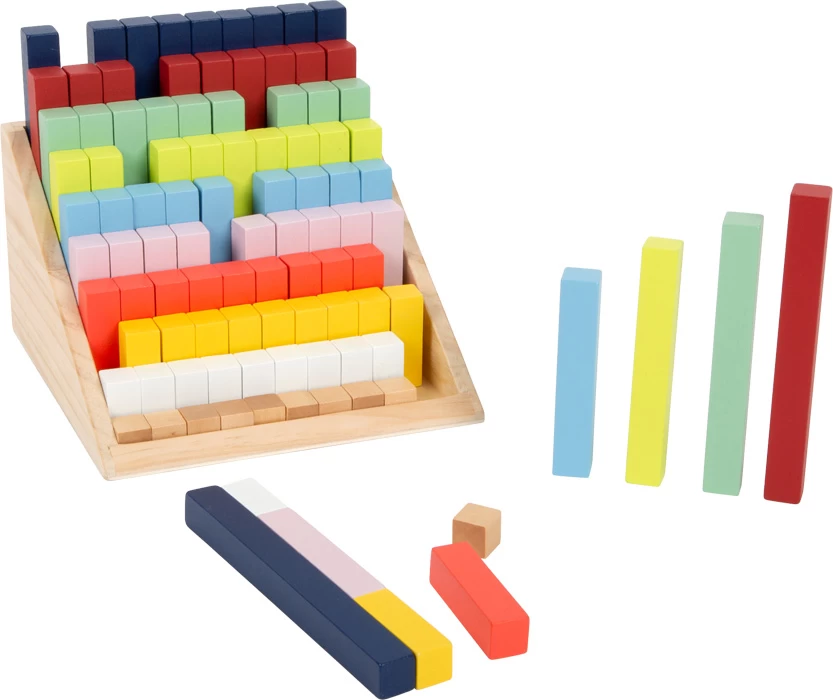 Rechenstäbchen trainieren die Vorstellungskraft und das logische Denken und vermitteln gleichzeitig ein Verständnis für Größen und Farben. Beim Zählen, Vergleichen und Sortieren, sowie bei der Addition, Subtraktion, Division und Multiplikation sind sie außerdem die idealen Begleiter für kleine und große Rechenmeister! In der passenden Holzbox können alle Rechenstäbchen einsortiert und verstaut werden.