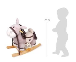 Wie niedlich! Der Schaukelsheriff aus kuschelweichem Textil und stabilem Holzrahmen lässt schon die Kleinsten tolle Ausritte durchs Kinderzimmer erleben. Das Schaukelpferd knistert beim Drücken der Ohren und hat zwei praktische Taschen für die Wegzehrung am Sattel.