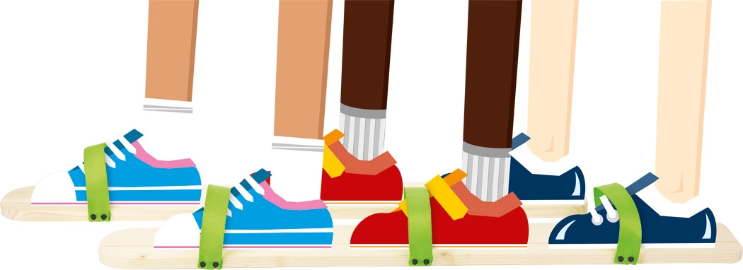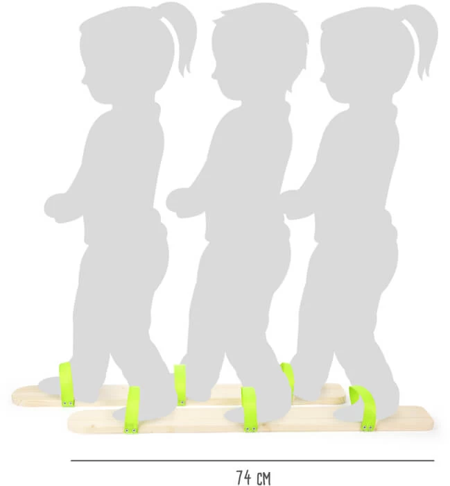 Im Sommer Skifahren? Mit diesem Spielgerät für bis zu drei Kinder kein Problem! Schnell sind die kleinen Skifahrer in die stabilen Fußschlaufen geschlüpft und schon geht es mit den robusten Sommerskiern los im Gleichschritt. Nur wenn alle sich zugleich bewegen, geht es vorwärts! Das trainiert Teamfähigkeit, Geschicklichkeit und Koordination.