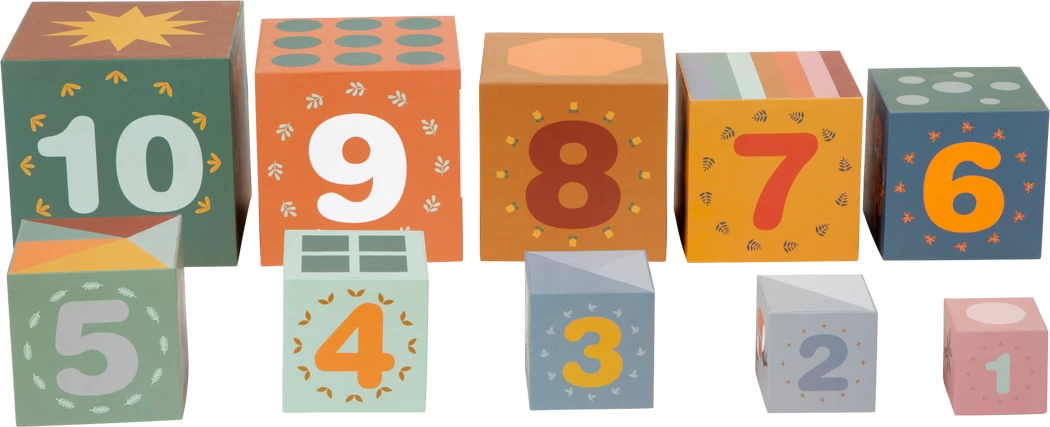 Tierischer Stapel-Spaß! Mit diesen zehn Stapelwürfeln in modernem, kindgerechtem Safari-Look können kleine Baumeister ihre Stapel-Künste unter Beweis stellen. Die Stapelwürfel aus stabiler Pappe sind mit niedlichen Motiven aus der Tierwelt sowie mit den Zahlen von 1-10 versehen. Die Anzahl der abgebildeten Tiere auf einem Würfel entspricht dabei der Zahl auf der Würfelrückseite.