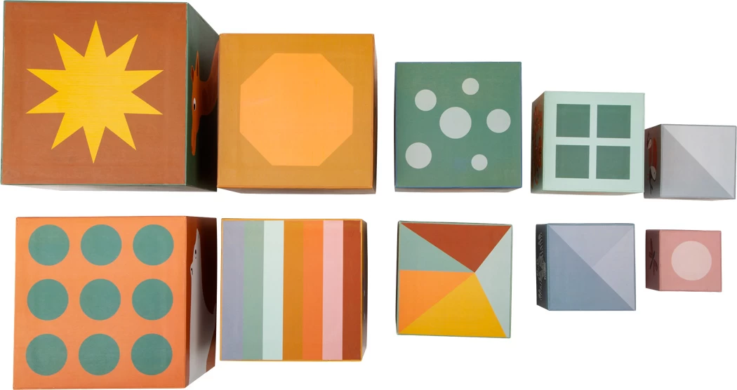 | Maße cm | größter Würfel ca. 14 x 14 x 14 cm, kleinster Würfel ca. 5 x 5 x 5 cm |