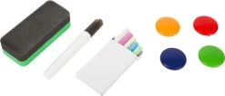 | Inhalt | 4 Magnete, 5 Kreidestücke, 1 Filzstift, 1 Schwamm, 1 Tafel-Tisch. |