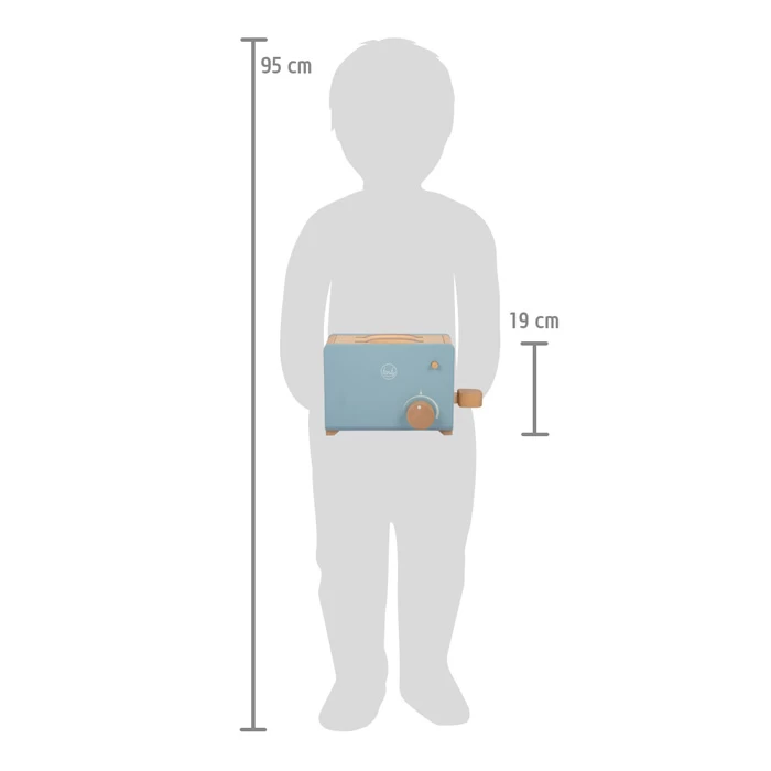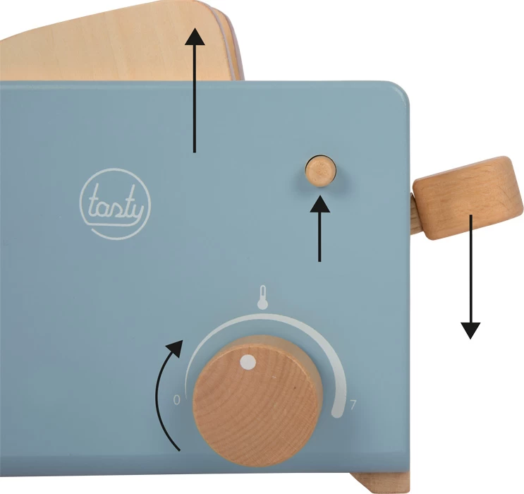Mit diesem Toaster und seinem Zubehör gelingt jedes Frühstück in der Kinderküche. Der Toaster überzeugt funktional durch seine Pop-Up-Funktion und optisch durch die besonders dezente Gestaltung mit hellem Rauchblau, Weiß und viel naturbelassenem Holz! Das umfangreiche Zubehör aus Toastscheiben, Messer, Brettchen, Butter und Marmelade sorgt zusammen mit dem Klick“-Geräusch am Temperaturknopf für realistischen Spielspaß.