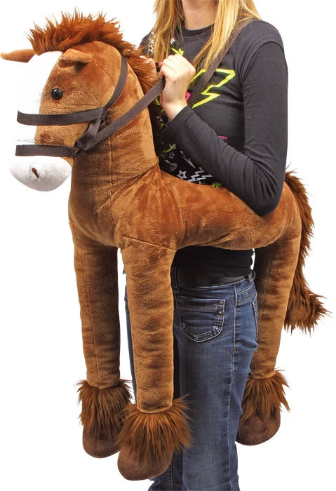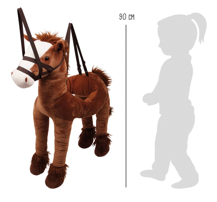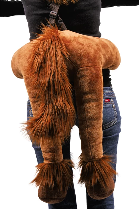Ein echter „Renner“ ist dieses kuschelweiche tragbare Pferd! Der Reiter steigt einfach „in“ das weich gefütterte Pferd, stellt die Riemen auf die gewünschte Länge und los geht die wilde Jagd!