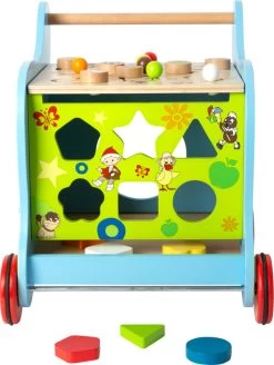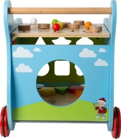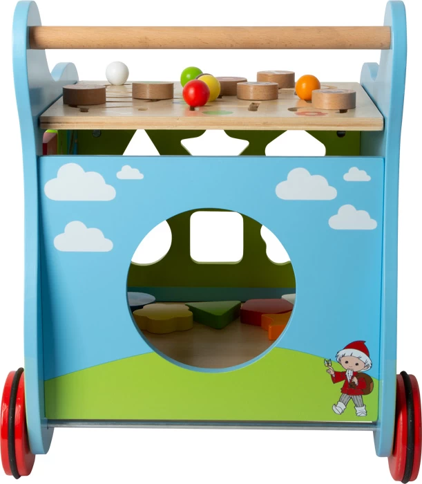 Ein wahres Multitalent ist dieser farbenfrohe Lauflernwagen mit lustigen SandmĂ€nnchen-Motiven! Auf vier Seiten gibt es etwas zu entdecken und zu lernen: Zahlen zum Umklappen, ein Formen-Steckspiel, ein Schiebelabyrinth und eine Tafel zum Malen und Schreiben. So unterstĂŒtzt der Lauflernwagen kleine Kinder nicht nur bei den ersten Schritten, sondern schult gleichzeitig spielerisch die Feinmotorik und die Farb- und Formerkennung. Gummierte Reifen und eine durchgĂ€ngige Achse sorgen fĂŒr Sicherheit und StabilitĂ€t. Ein kunterbuntes Lernerlebnis und ein Must-Have fĂŒr kleine SandmĂ€nnchen-Fans!