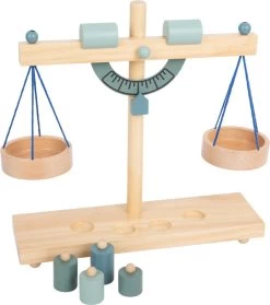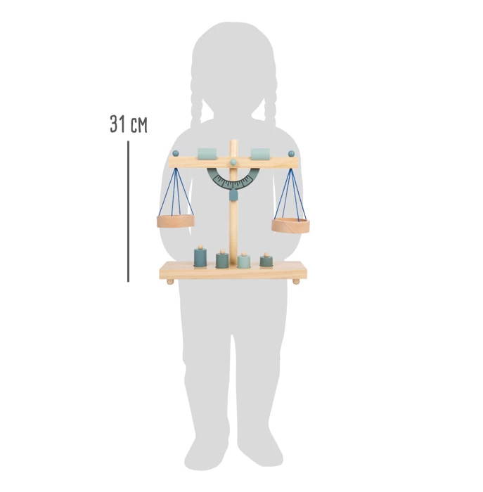 Abwiegen wie auf dem Wochenmarkt! Mit dieser stabilen Balkenwaage aus Holz haben kleine Kaufleute das passende Werkzeug zur Hand, wenn sie im Kaufmannsladen oder am Kinder-Marktstand die Lebensmittel für ihre Kunden abwiegen. Vier verschiedene Gewichte helfen bei der Gewichtsbestimmung und zwei verschiebbare Ausgleichsgewichte dienen zum Justieren der Waage. So bekommen Kinder ganz spielerisch ein Gefühl für Gewicht und Gleichgewicht.