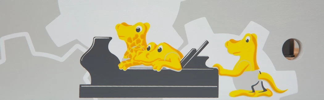 Dezente Illustrationen fleißiger Miniwobs regen die Phantasie und den Tatendrang der Kinder an und motivieren sie zum Tüfteln und Werkeln. Inkl. 8 Werkzeugen und umfangreichem Zubehör. Werkzeug und Zubehör umfasst 1 Kreissäge, 1 Akkuschrauber mit 3 Bits, 1 Wasserwaage, 1 Schraubstock, 1 Hammer, 1 Schraubenschlüssel, 1 Schraubendreher, 1 Säge, 2 anschraubbare Kisten, 6 Konstruktionsleisten, 16 Schrauben, 16 Muttern, 3 Nägel. Passt durch die intensive und dennoch reduzierte Farbgebung ideal zum Werkstattthema und fügt sich durch die klaren und reduzierten Farben gut in jeden Wohnraum ein. Das perfekte Rollenspielzeug für kleine Handwerker!