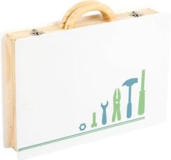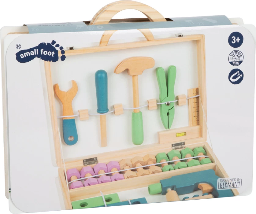 Jetzt geht das Heimwerken richtig los! Mit diesem Werkzeugkoffer aus Holz im skandinavischen Design werden kleine Handwerker zu echten Profis. Detailreiche Zubehörteile, wie z.B. ein Lineal mit integrierter Wasserwaage und ein handlicher Akkuschrauber, der seine Bits mithilfe von Magneten wechseln kann, lassen keine Wünsche offen! Inkl. umfangreichem Zubehör.